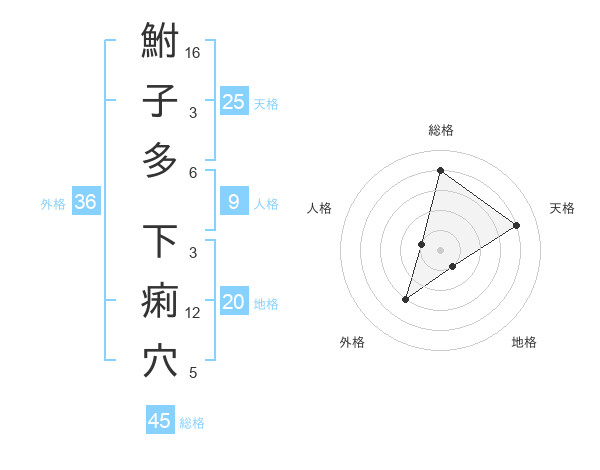 鮒子多 下痢穴さんの総格は45画の4点