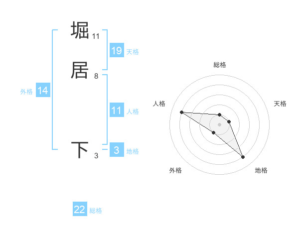 堀居 下さんの総格は22画の1点!