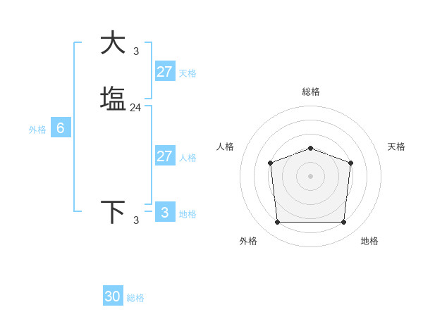 大塩 下さんの総格は30画の2点!