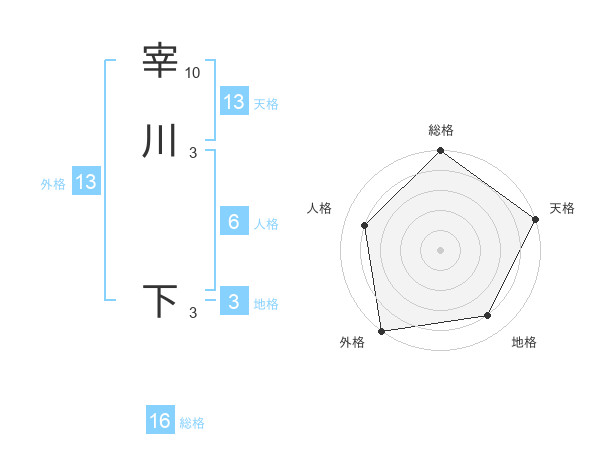 宰川 下さんの総格は16画の5点!