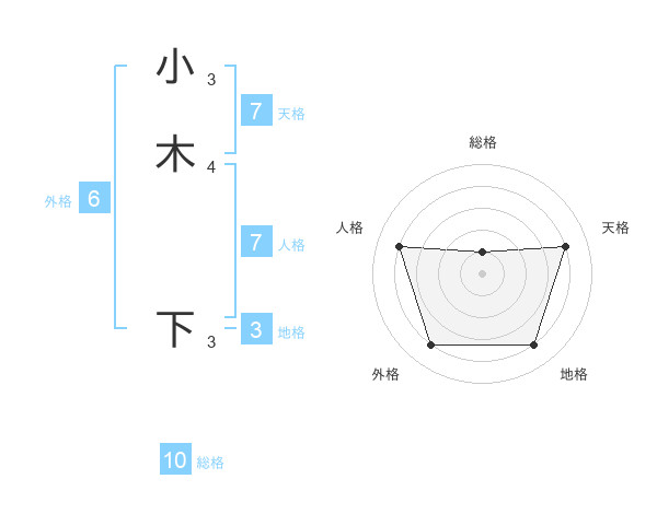 小木 下さんの天格は7画の4点!