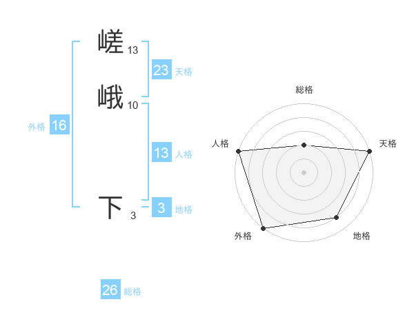 嵯峨 下さんの総格は26画の2点!
