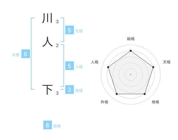 川人 下さんの総格は8画の4点!