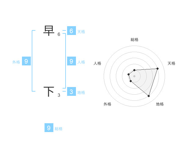 早 下さんの総格は9画の1点!