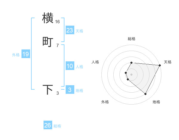 横町 下さんの総格は26画の2点!