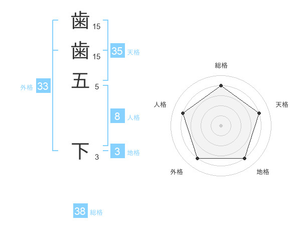 歯歯五 下さんの総格は38画の4点!
