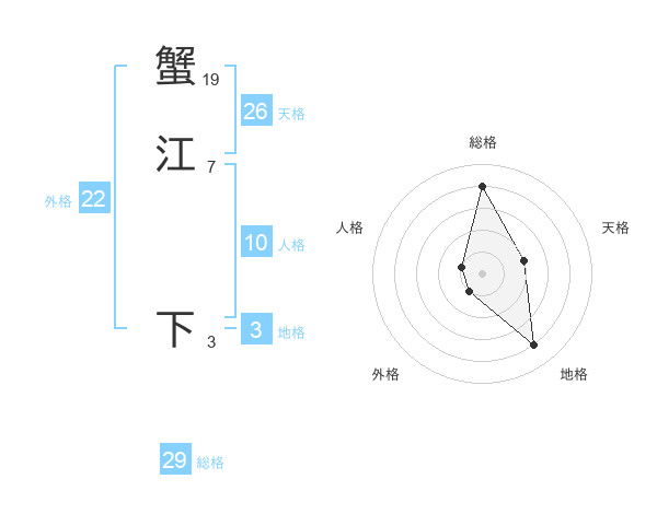 蟹江 下さんの総格は29画の4点!