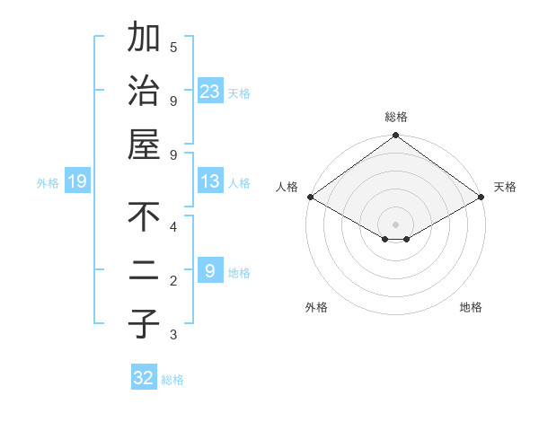 加治屋 不ニ子さんを姓名の画数から五運を鑑定