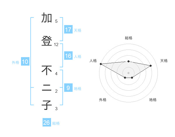加登 不ニ子さんを姓名の画数から五運を鑑定
