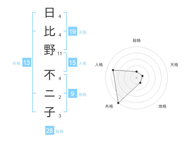 日比野 不ニ子さんを姓名の画数から五運を鑑定