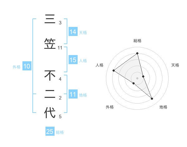 三笠 不二代さんを姓名の画数から五運を鑑定