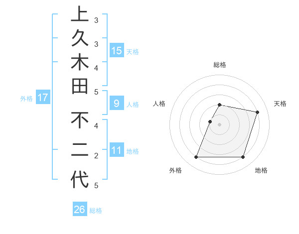 上久木田 不二代さんを姓名の画数から五運を鑑定