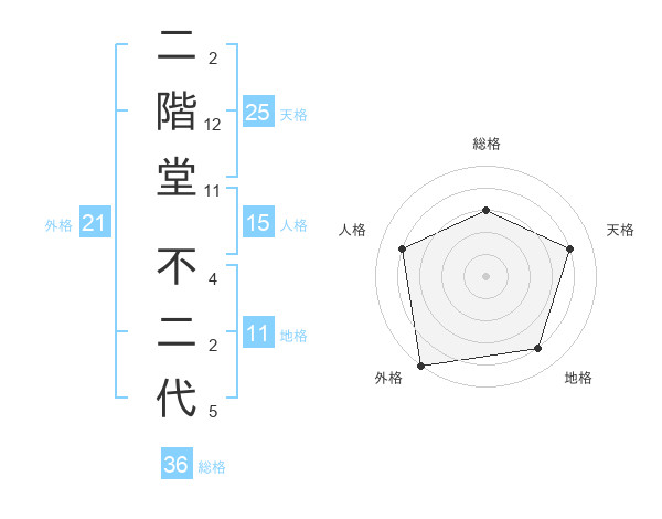 二階堂 不二代さんを姓名の画数から五運を鑑定