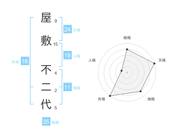 屋敷 不二代さんを姓名の画数から五運を鑑定