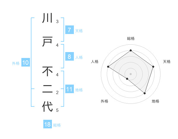 川戸 不二代さんの総格は18画の4点!