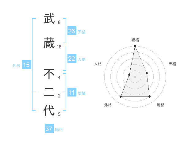武蔵 不二代さんを姓名の画数から五運を鑑定