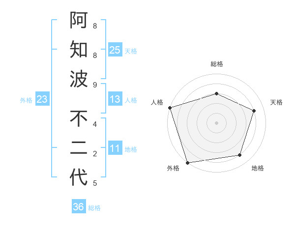 阿知波 不二代さんの外格は23画の5点!