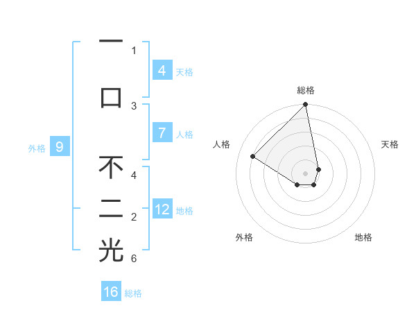 一口 不二光さんの総格は16画の5点!