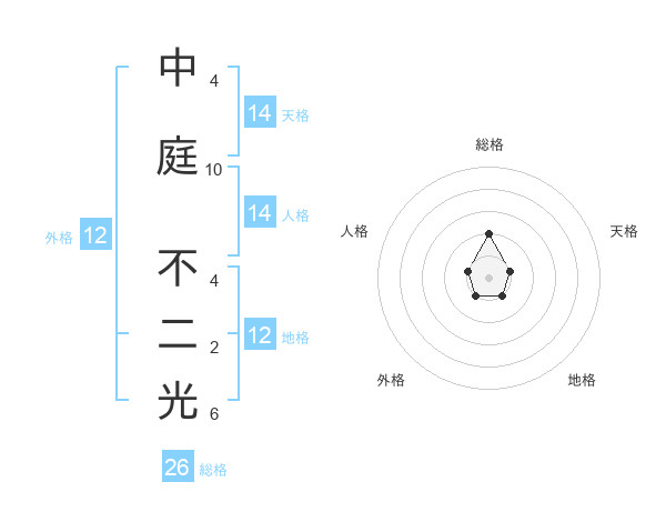 中庭 不二光さんを姓名の画数から五運を鑑定