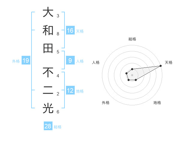 大和田 不二光さんを姓名の画数から五運を鑑定