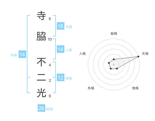 寺脇 不二光さんの天格は16画の5点!