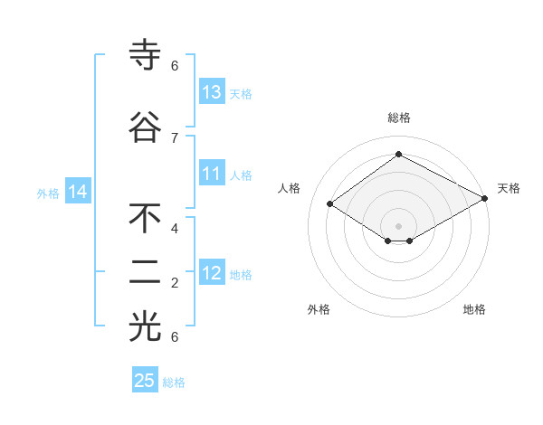 寺谷 不二光さんの総格は25画の4点!