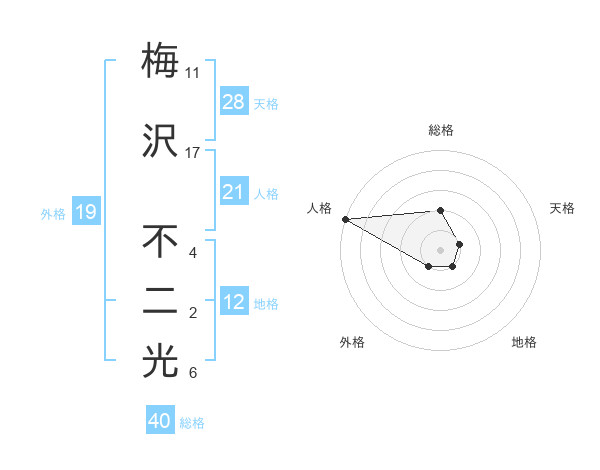 梅沢 不二光さんを姓名の画数から五運を鑑定