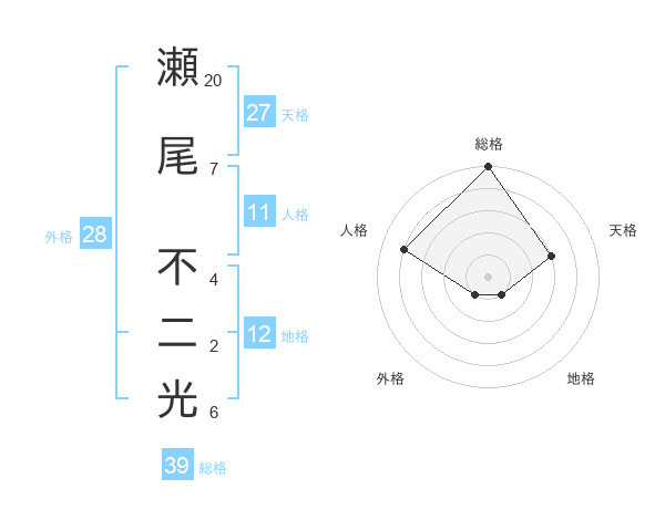 瀬尾 不二光さんを姓名の画数から五運を鑑定