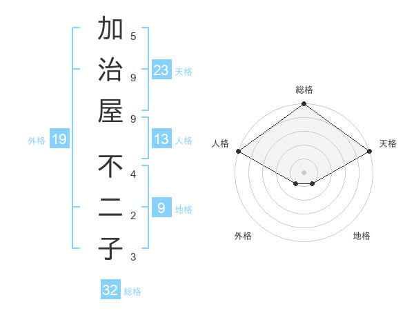 加治屋 不二子さんを姓名の画数から五運を鑑定