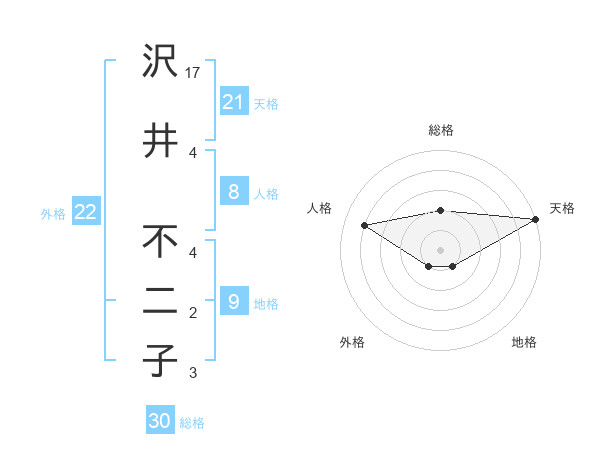 沢井 不二子さんを姓名の画数から五運を鑑定