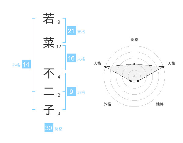 若菜 不二子さんを姓名の画数から五運を鑑定