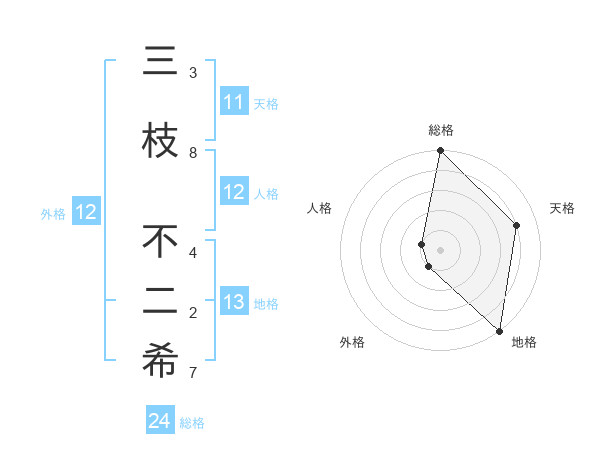 三枝 不二希さんを姓名の画数から五運を鑑定