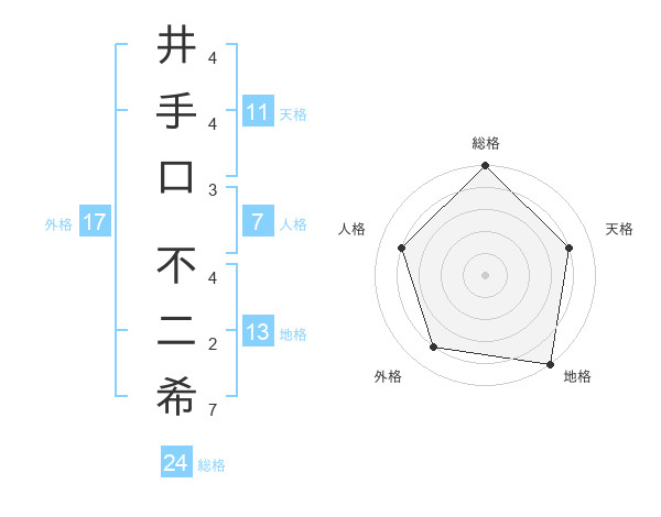 井手口 不二希さんを姓名の画数から五運を鑑定