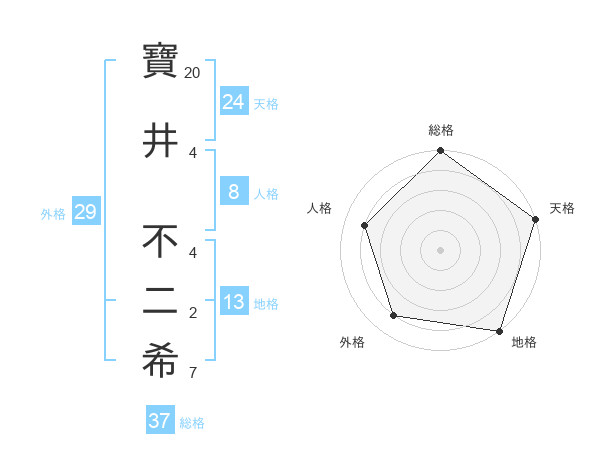寶井 不二希さんを姓名の画数から五運を鑑定