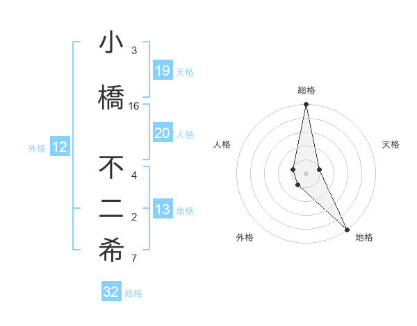 小橋 不二希さんを姓名の画数から五運を鑑定
