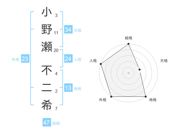 小野瀬 不二希さんを姓名の画数から五運を鑑定