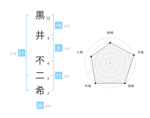 黒井 不二希さんを姓名の画数から五運を鑑定