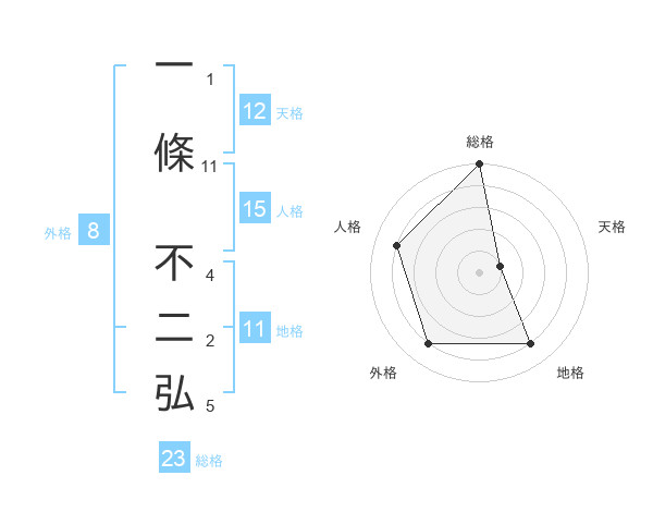 一條 不二弘さんの総格は23画の5点!