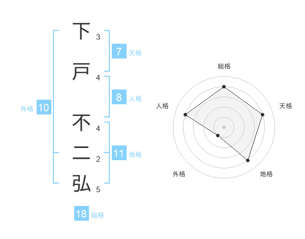 下戸 不二弘さんを姓名の画数から五運を鑑定