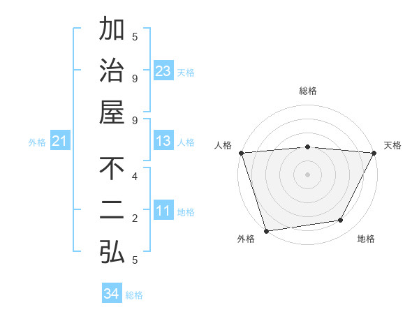 加治屋 不二弘さんの天格は23画の5点