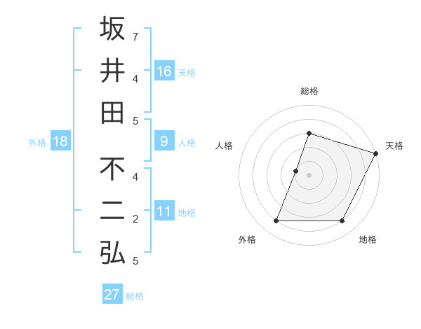 坂井田 不二弘さんを姓名の画数から五運を鑑定