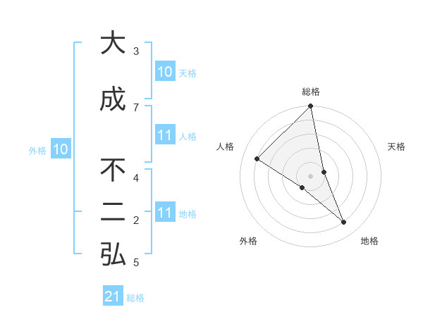 大成 不二弘さんを姓名の画数から五運を鑑定