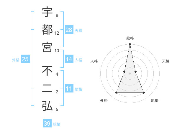 宇都宮 不二弘さんを姓名の画数から五運を鑑定