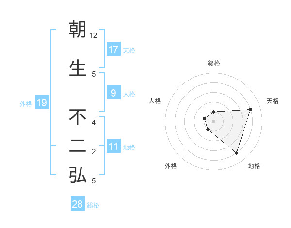 朝生 不二弘さんを姓名の画数から五運を鑑定