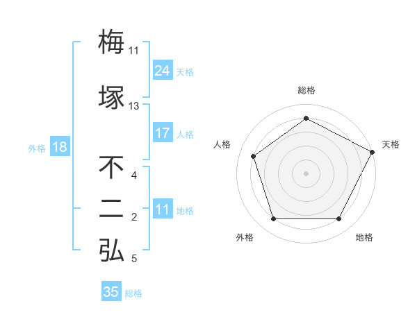 梅塚 不二弘さんの天格は24画の5点!