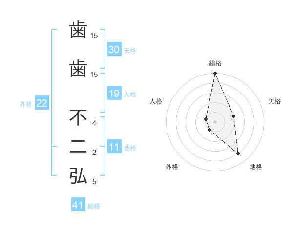歯歯 不二弘さんを姓名の画数から五運を鑑定