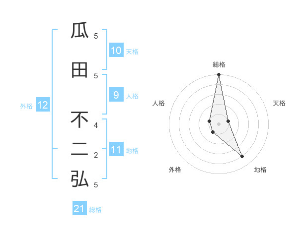瓜田 不二弘さんを姓名の画数から五運を鑑定