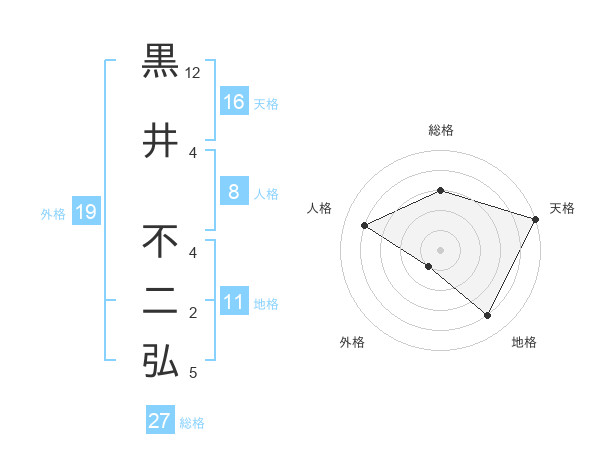 黒井 不二弘さんを姓名の画数から五運を鑑定