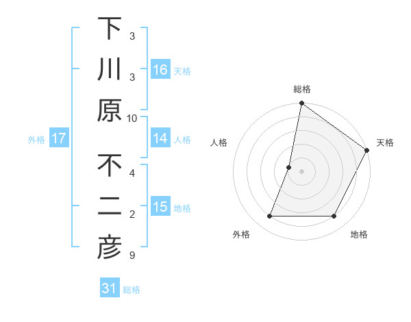 下川原 不二彦さんを姓名の画数から五運を鑑定