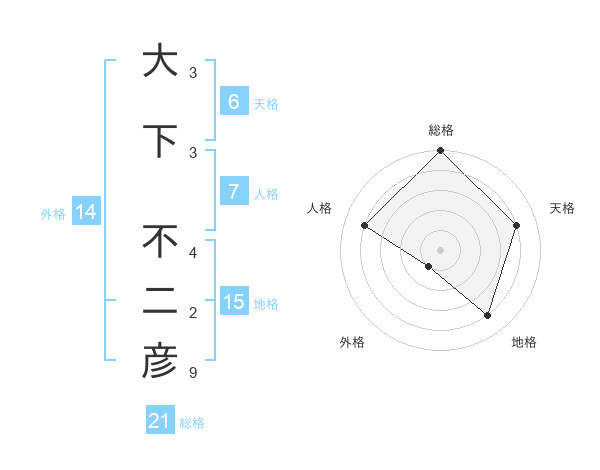 大下 不二彦さんの総格は21画の5点!